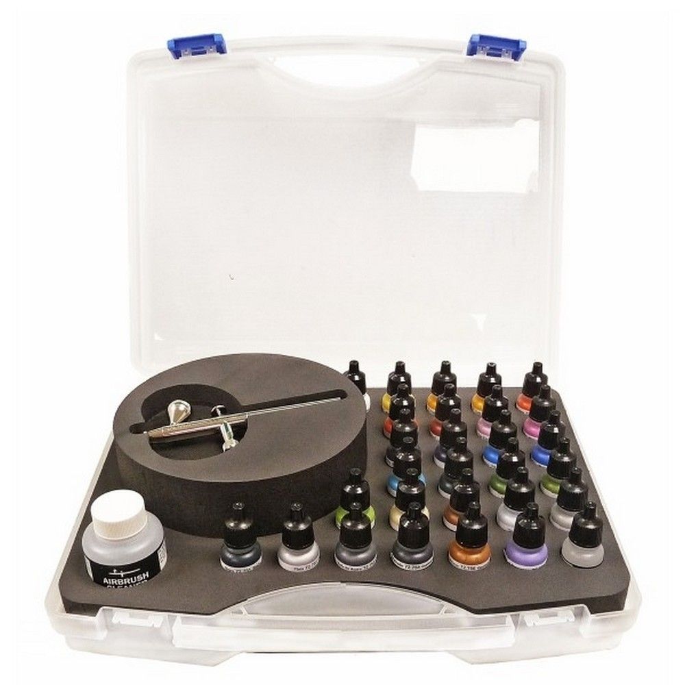 Plastic case with 28 Game Air Colors, Airbrush Cleaner and Thinner, Harder & Steenbeck Ultra Airbrush with 2.5m Hose with Quick Release Coupling