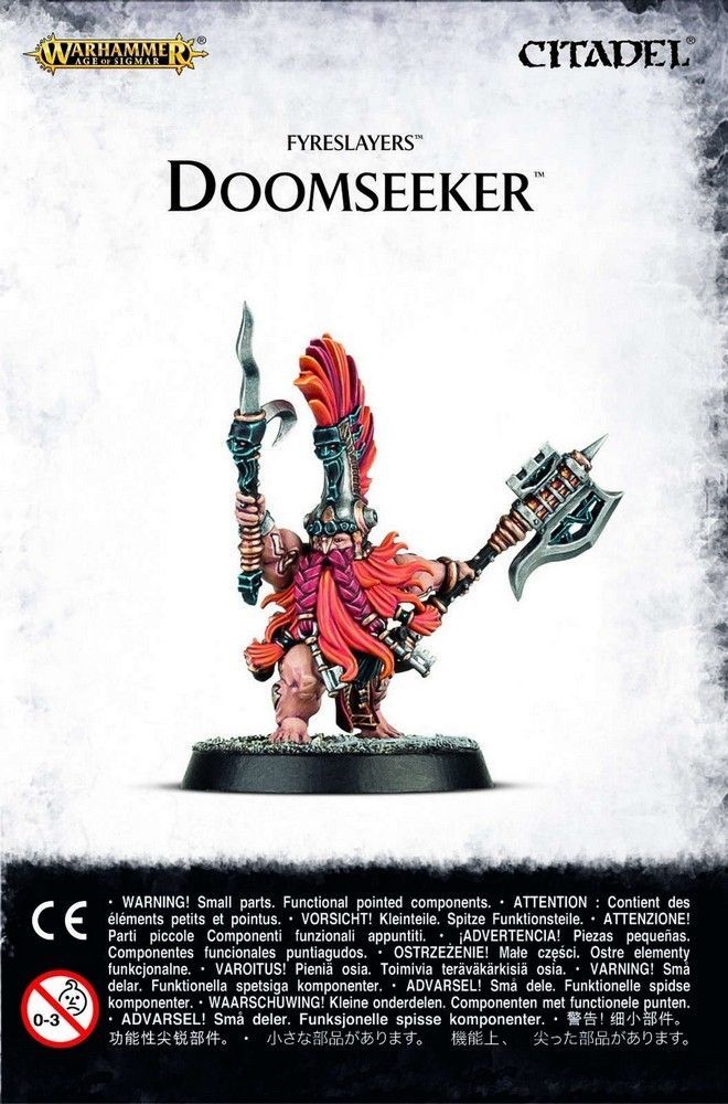 The Fyreslayers Doomseeker is a very proud, strong warrior and carries a mighty axe which scorches the air with every swing. He is a member of the Fyreslayers, a brave, loud and mighty clan of Dwarf warriors that will charge into battle without a second hesitation, they will slay anyone or anything in their path while on their hunt for gold, which is believed to contain the essence of Grimnir himself.
