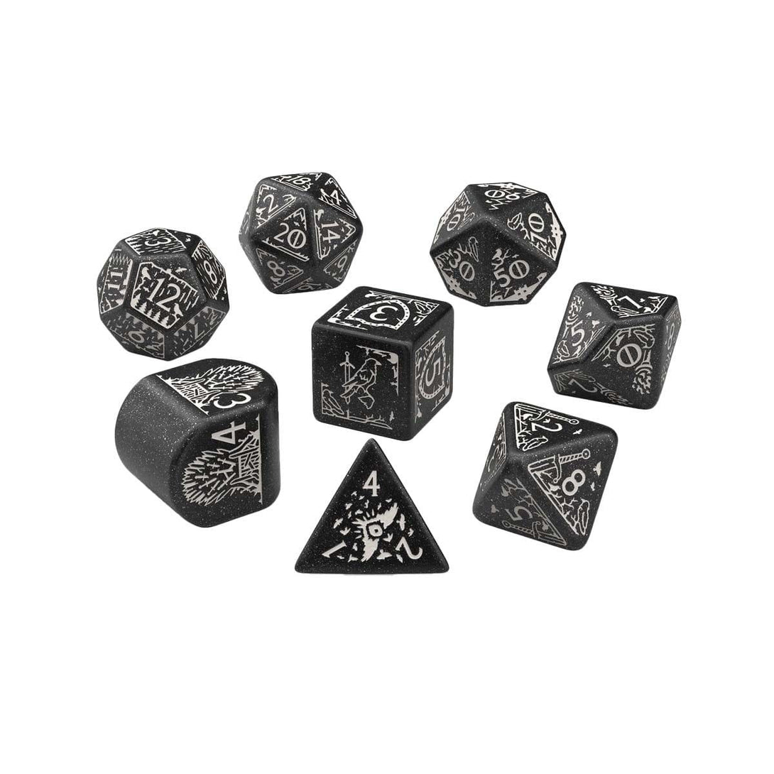 The Colors of Westeros – The shimmering black material of the dice (infused with glitter dust) is adorned with pale gray paintings, ensuring high readability and immersion.