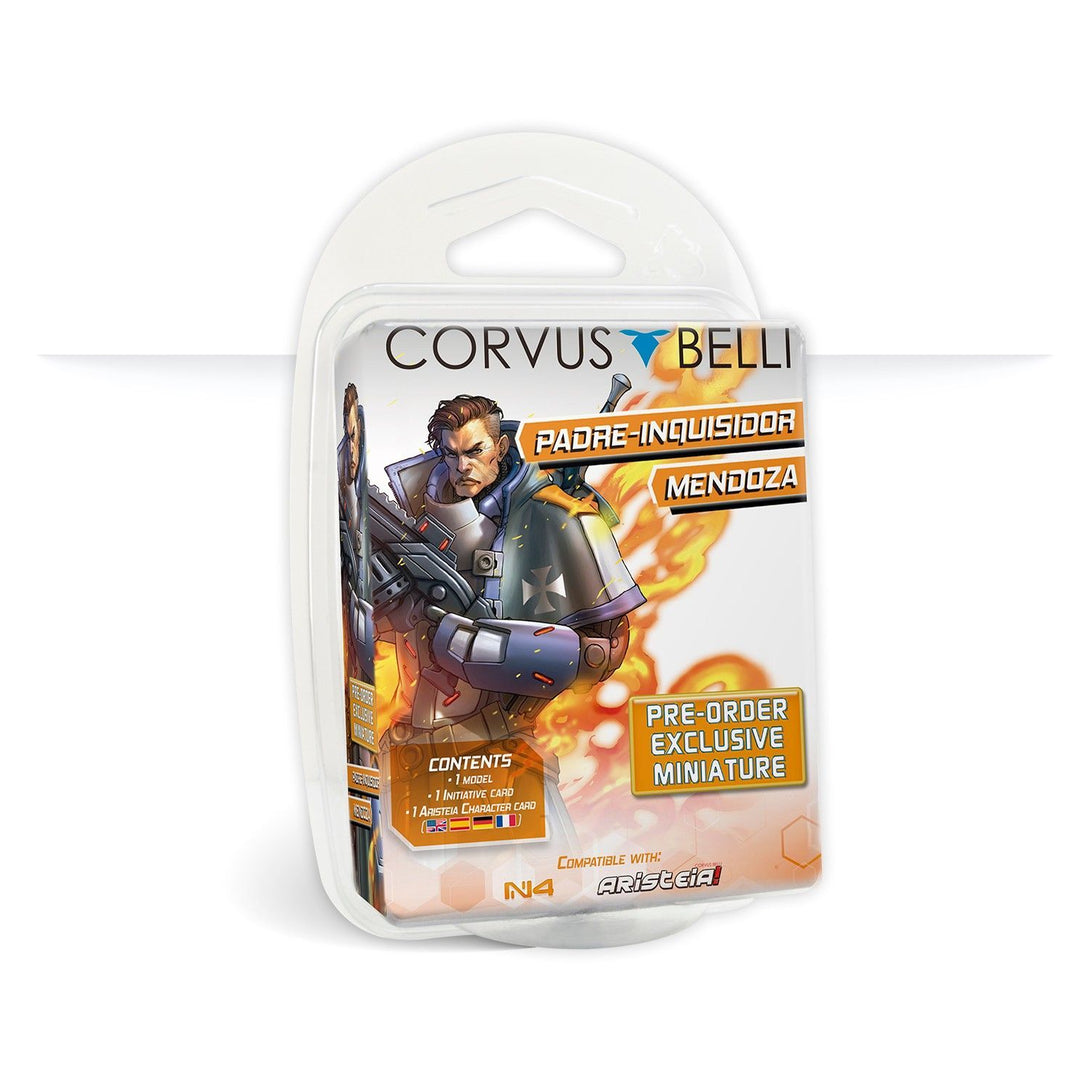 Padre-Inquisidor Mendoza miniature, a completely new model, never seen before. Mendoza can also be used as an alternative Skin of the same character in the board game Aristeia! as the blister contains its own card.