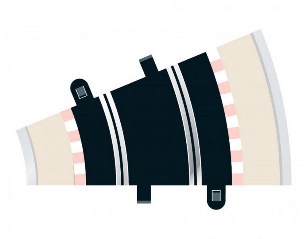 Connect modern Scalextric track to original track (which has ring-shaped connectors) using the C8222 Converter Straight.