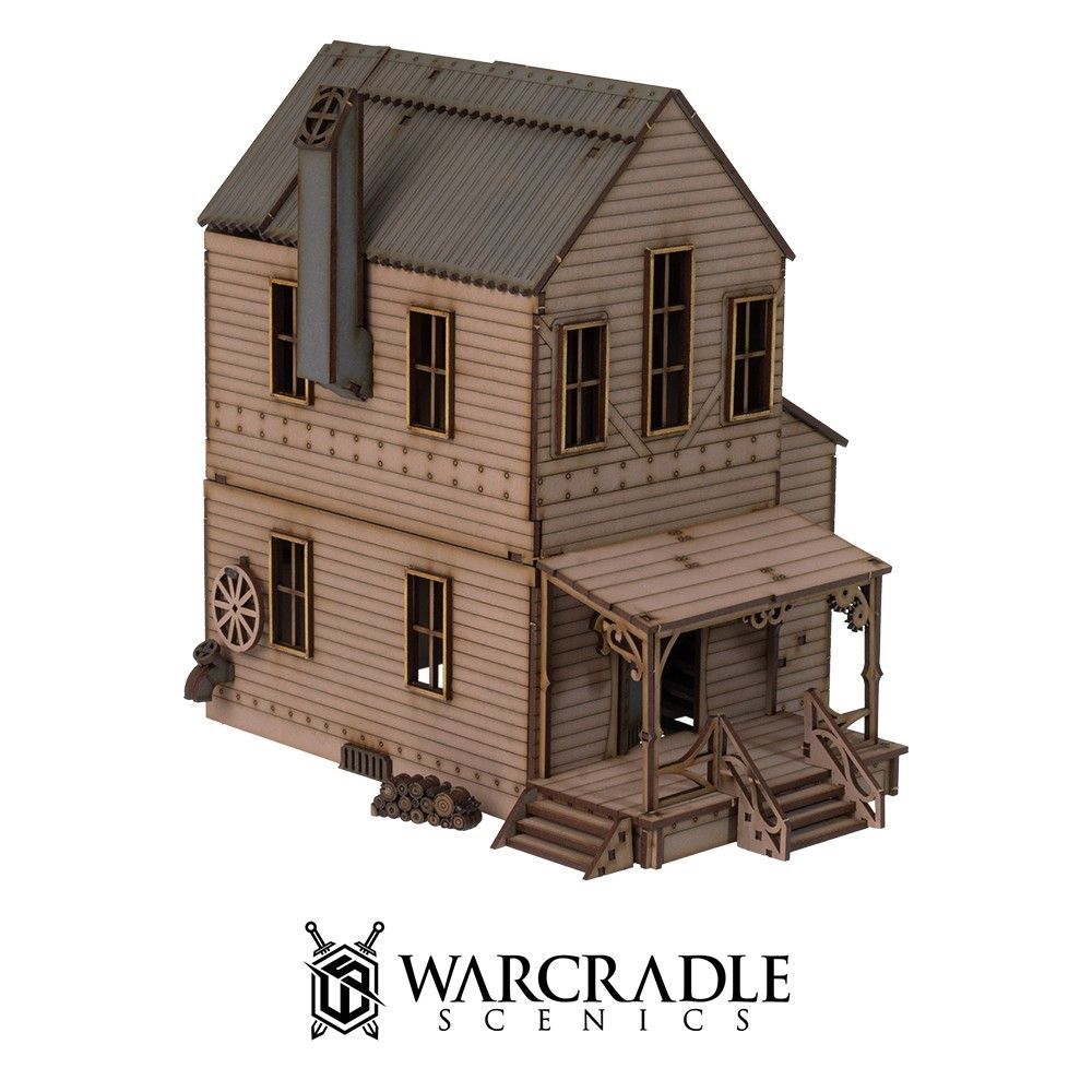 Traditionally, houses in the early days of Retribution were hand-built by the folks who planned to live in them. As the town grew there were building crews who used the lessons they learned from erecting their own homes to earn a living by building the homes and businesses of those who would increase the population. Now a third stage of building has arrived. Thanks to advances in engineering, prefabricated walls and roofs can be assembled in places like the Pipeworks and be transported by train to the heart of Retribution ready for teams of workers to construct them in record time. The town of Retribution is fast becoming a city, though it is still a backwater place in comparison to the urban landscape back east.