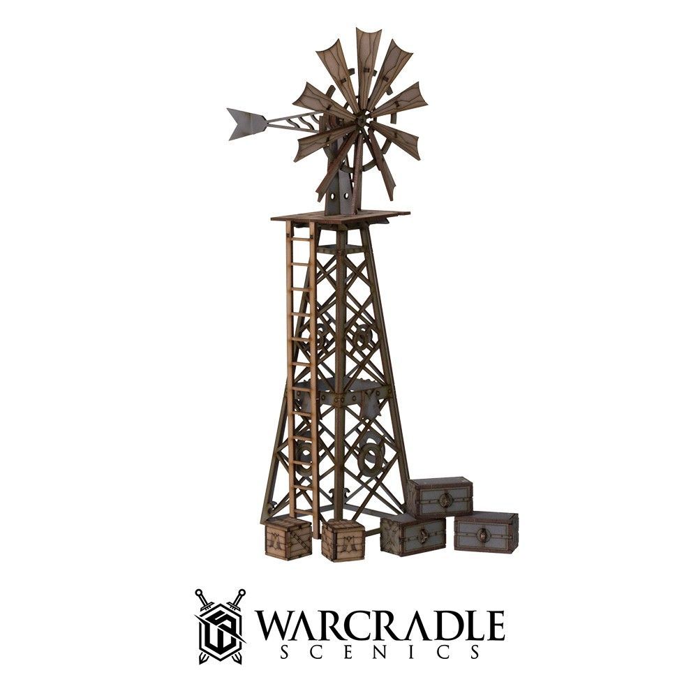 Though the town of Retribution has changed rapidly with the coming of the Dystopian Age, one landmark still stands in the skyline. The windmill, known simply as 'Retribution Tower', has been there since the town was first settled. Self-governing water pump windmills are a staple of the Union homestead and this example has brought fresh drinking water from below ground to the people of Retribution for years. Some newcomers to the town wonder why an ageing scaffold of wood and metal is still here when so many wonders of engineering appear day by day but the long-time inhabitants know better. If it 'aint broke, don't fix it. In fact, most fighting groups in the area are loath to cause damage to the wind engine, no matter their allegiance, knowing that without clean drinking water they'd all be soon dead. On occasion, some outlaws think to use the high point as a position to snipe the enemy in times of violent dispute; this in fact paints a target on the ruffian. The enemy, making sure they are removed swiftly so they don't cause any accidental breakage. While the town has it's rare times of peace then local children dare each other to climb the tower to where the last marksman found their end and in the warm twilight a gentle breeze turns the sails and seems to let out a creaking laughter.