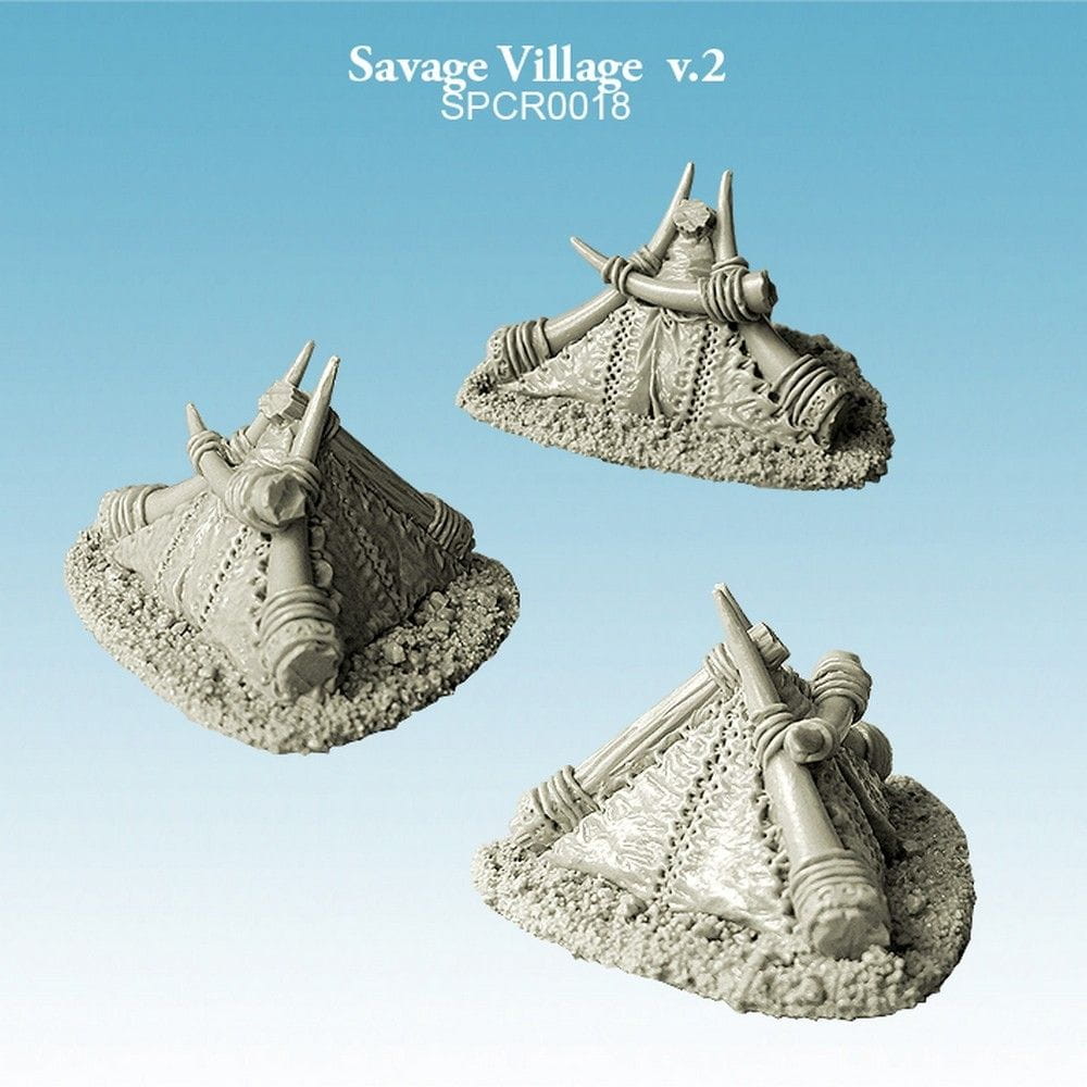 Contains 3 high-quality resin models to make a Savage Village. Ideal for 10mm scale scenery. Use them to stage your battlefield or house your barbarian miniatures.