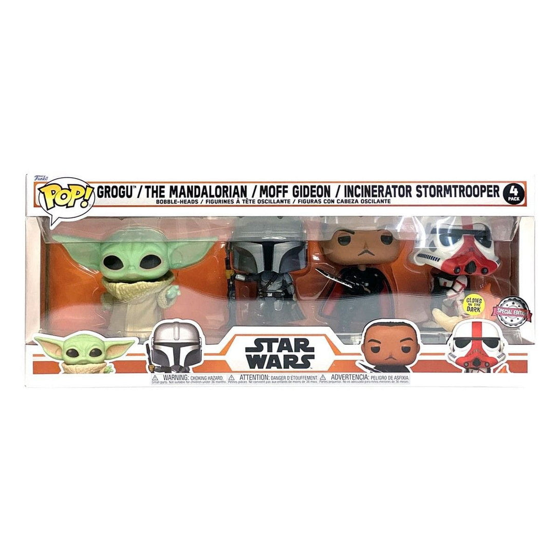 Bring a piece of Star Wars magic home with your favorite characters! Welcome home Pop! Grogu, Pop! Moff Gideon, Pop! Incinerator Stormtrooper, and Pop! The Mandalorian into your home. Complete your Star Wars collection with this 4-pack. Vinyl figures are approximately 3.8 to 3.95-inches tall.